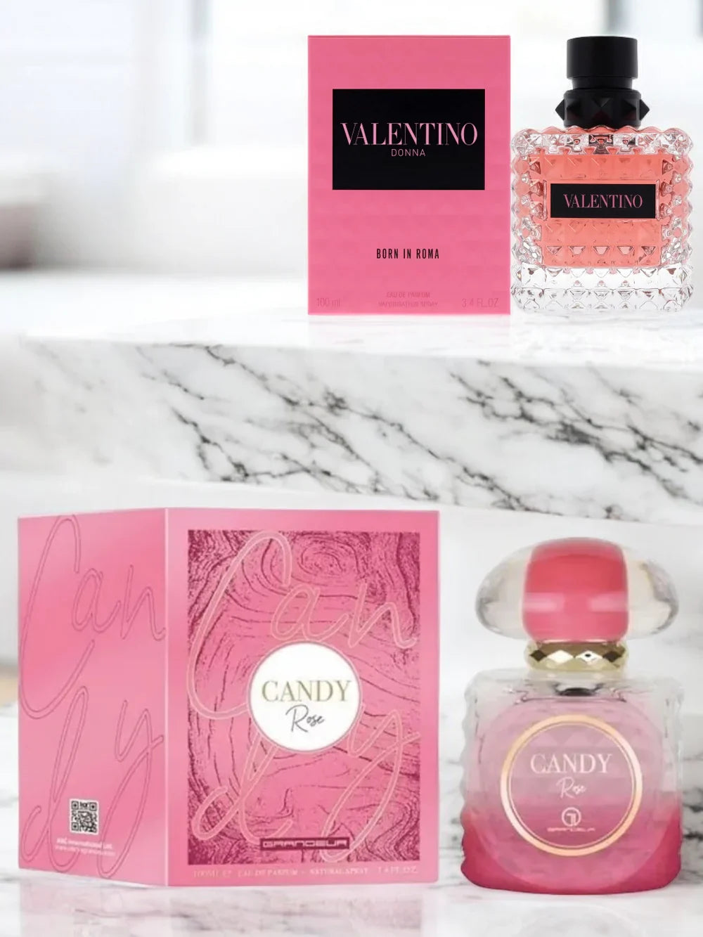 Candy Rose by Grandeur is a captivating women's fragrance that harmoniously blends fruity and floral notes with a sweet, warm base.